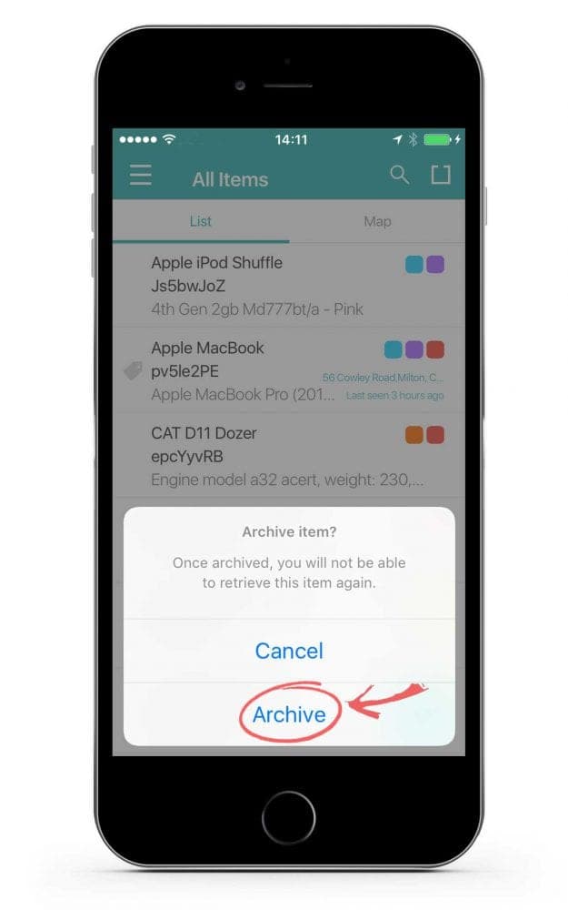 3. Confirm that you would like to delete the asset by tapping on the archive button.